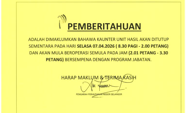Perasmian Pejabat Hutan Daerah Selangor Tengah 7 April 2026 (Selasa) SUNGAI BULOH: Ketua Pengarah Perhutanan Semenanjung Malaysia, YBhg. Dato’ Haji Zahari bin Ibrahim telah merasmikan Pejabat Hutan Daerah Selangor Tengah semasa Majlis Perjumpaan Khas Ketua Pengarah Perhutanan Semenanjung Malaysia bersama warga Jabatan Perhutanan Negeri Selangor (JPNS) di Dewan Lumu, Kompleks Perhutanan Sungai Buloh.  Ketibaan beliau telah disambut oleh Pengarah Perhutanan Negeri Selangor, Tuan Azhar bin Ahmad, bersama barisan pengurusan tertinggi jabatan iaitu Encik Amsari bin Mahmud (Timbalan Pengarah Pembangunan Hutan), Encik Mohd Nor Firdaus bin Rahim (Timbalan Pengarah Operasi Hutan) serta Encik Mohd Hadre bin Mohamad (Pegawai Hutan Daerah Selangor Tengah), diiringi pegawai-pegawai kanan jabatan J...